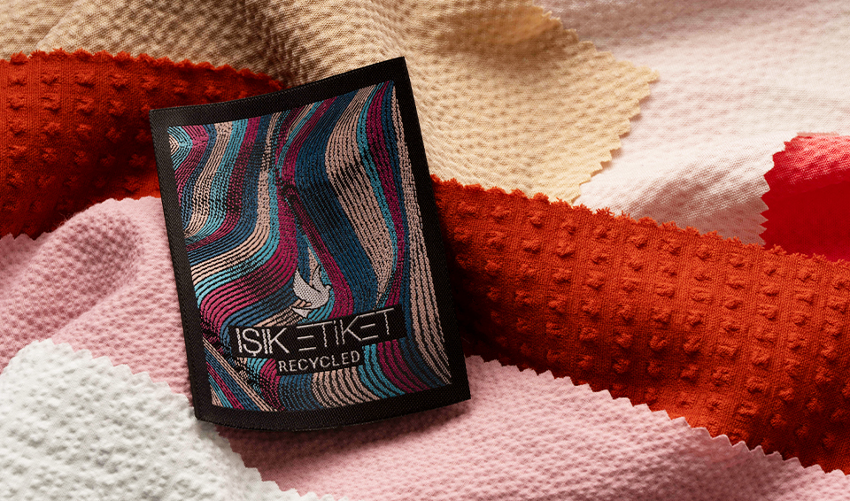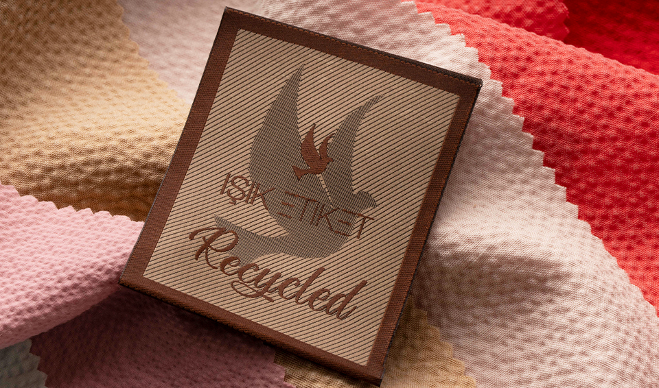 Geri dönüşümlü dokuma etiketler, sürdürülebilir ürünlerimizin en önemlilerinden biridir. Aynı zamanda "Recycled" dokuma etiket olarak da bilinen bu etiketler, %100 geri dönüştürülmüş polyester ipliklerden üretilmektedir. Normal dokuma etiketlerle aynı kalite ve görselliği sunar. Müşterilerimizin isteğine bağlı olarak, istenilen kalite, renk ve ölçülerde üretim gerçekleştirebilmekteyiz.